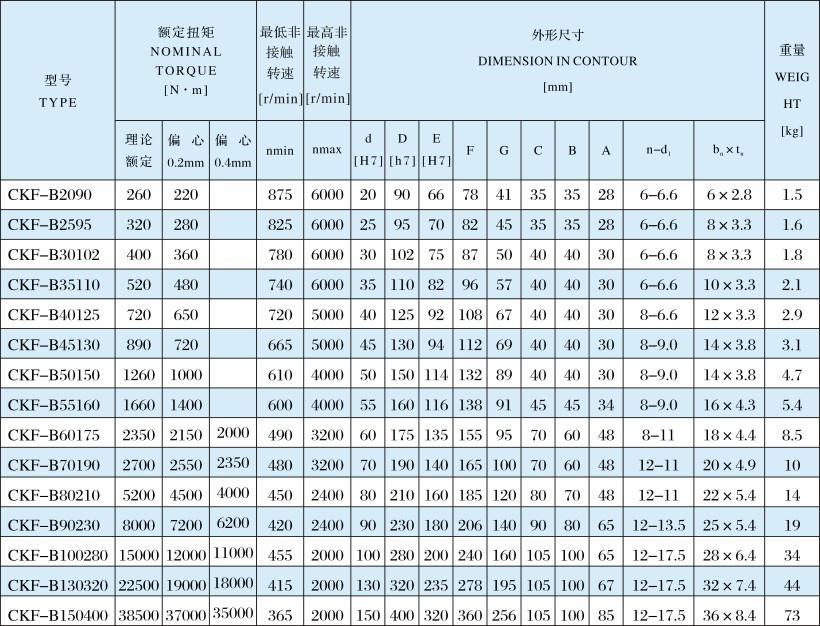 CKF-B非接觸式單向離合器